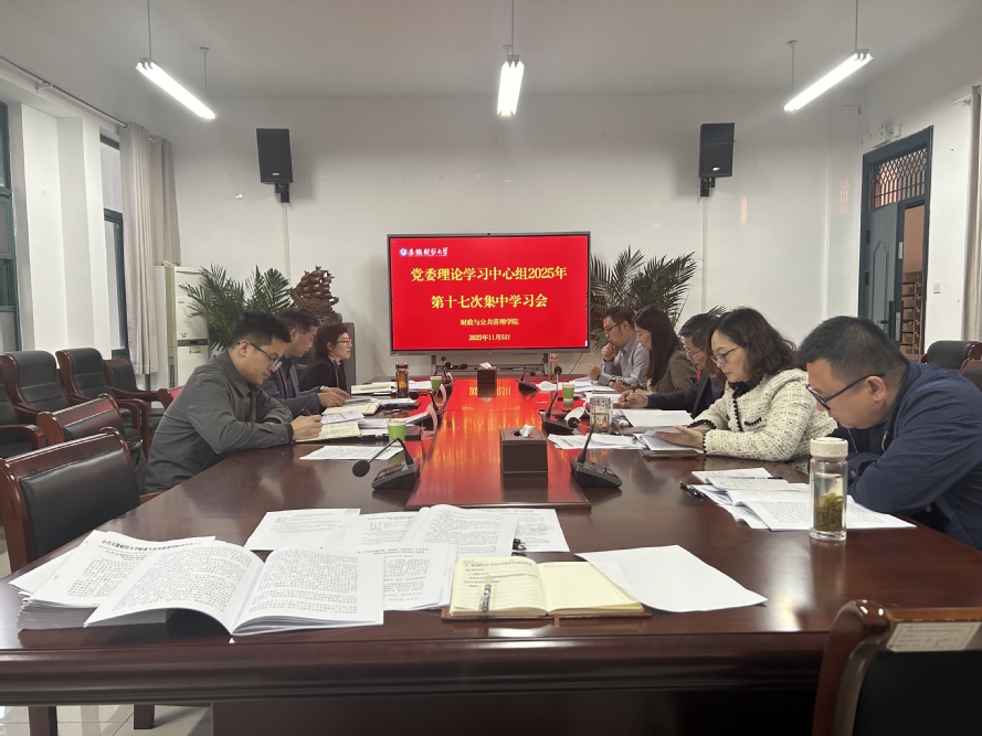 11月5日下午,学院党委在博文楼313会议室召开理论学习中心组2025年第十七次集中学习会,专题学习贯彻党的二十届四中全会精神。校党委委员、党委宣传部常务副部长孙涛,党委宣传部副部长王秋祎,新闻宣传中心主任樊金坦列席会议。学院党委理论学习中心组成员参加会议,教师党员代表贺晓宇老师列席会议。学院党委书记陈先年主持会议。